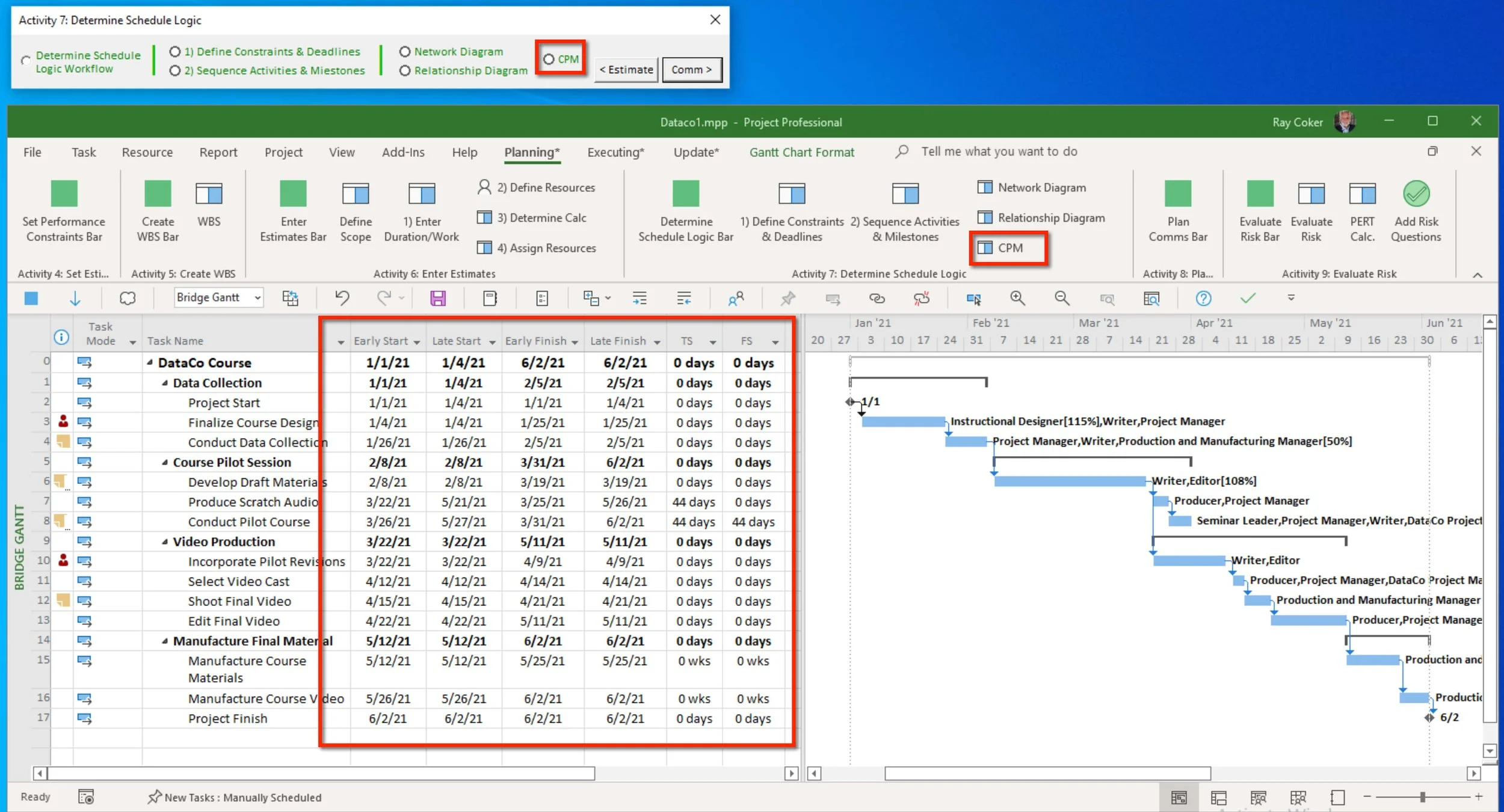 Activity 7: Determine Schedule Logic