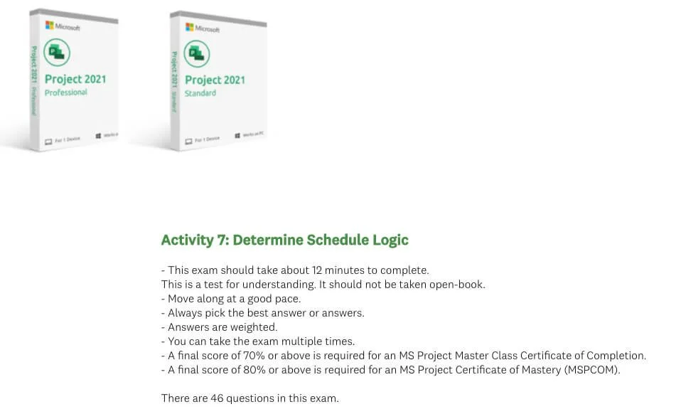 Activity 7: Determine Schedule Logic Exam (jump to)